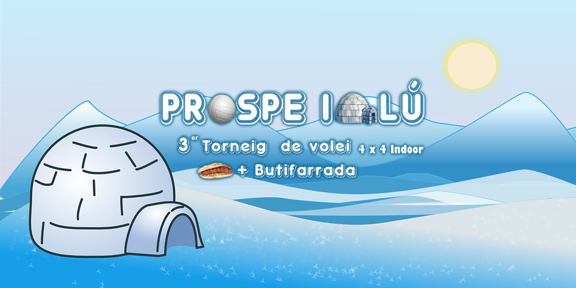 Ene82018Voleibol Torneo Prospe Iglú27 de Enero 20€ por equipo Únicamente incluye participación en el torneo Prospe Iglú + Comida27 de Enero 30€ por equipo Incluye participación en el torneo y comida Butifarrada27 de Enero 3€ POR PERSONA Butifarrada Categoría: Voleibol08/01/2018 Comparte esta noticia Share on FacebookShare on Facebook Share on XShare on X Share on WhatsAppShare on WhatsApp